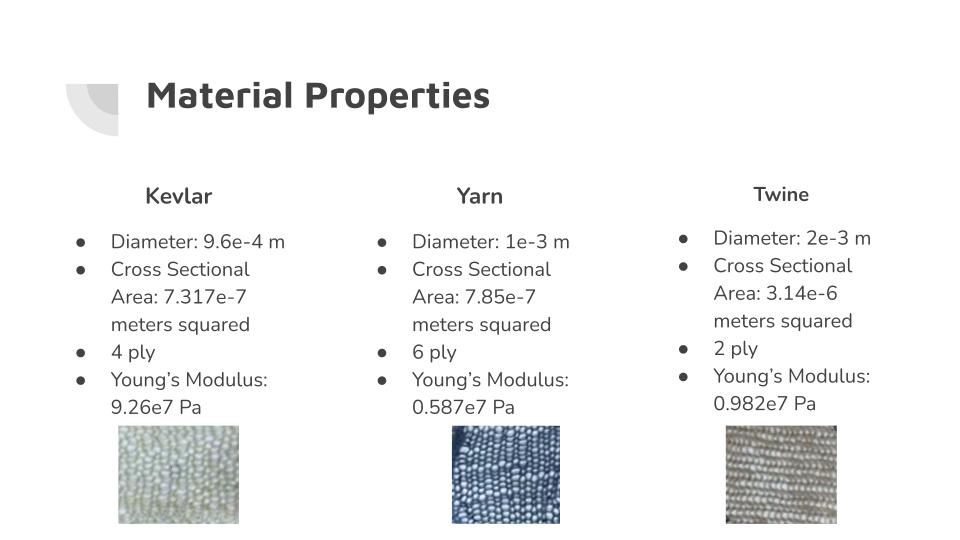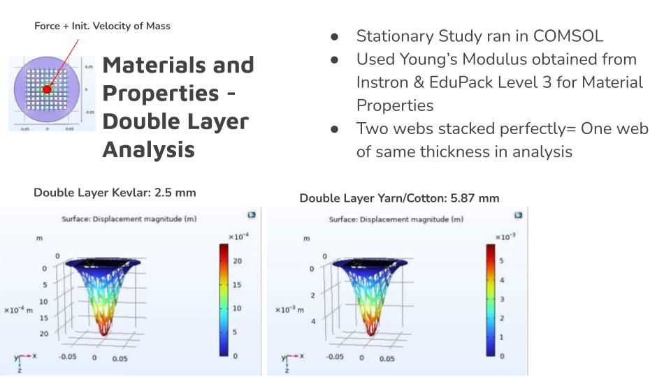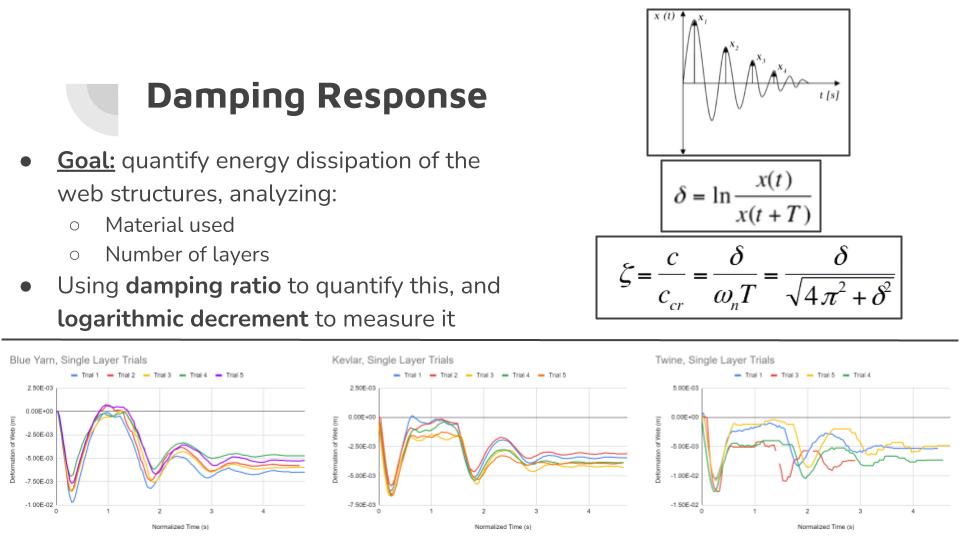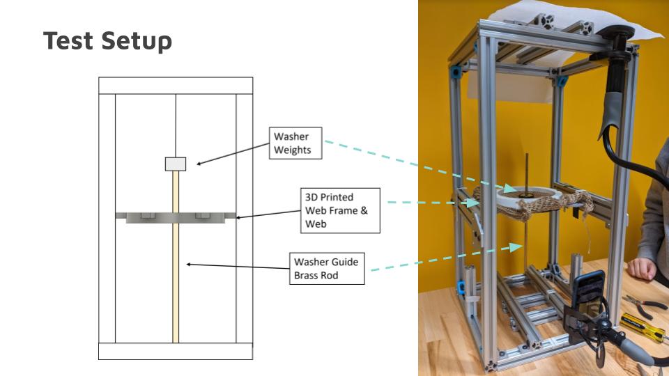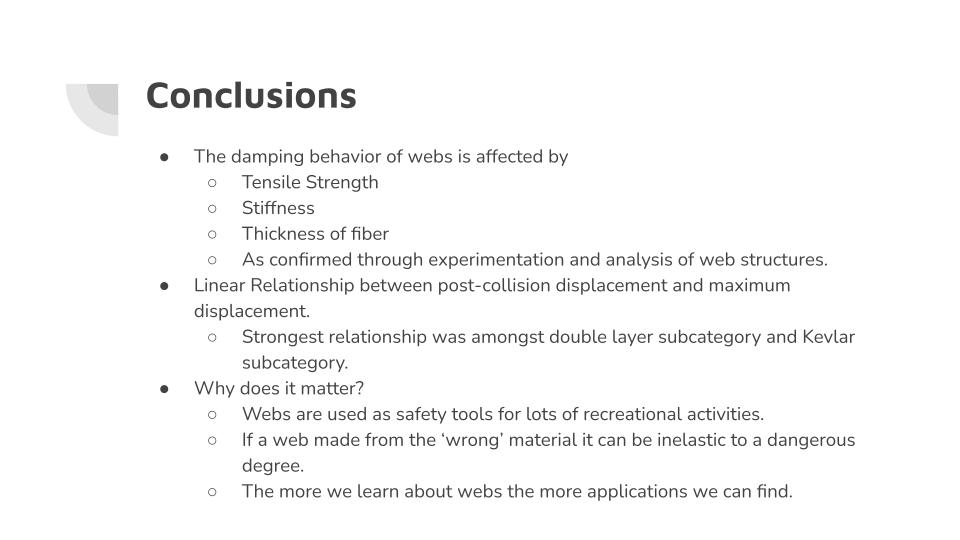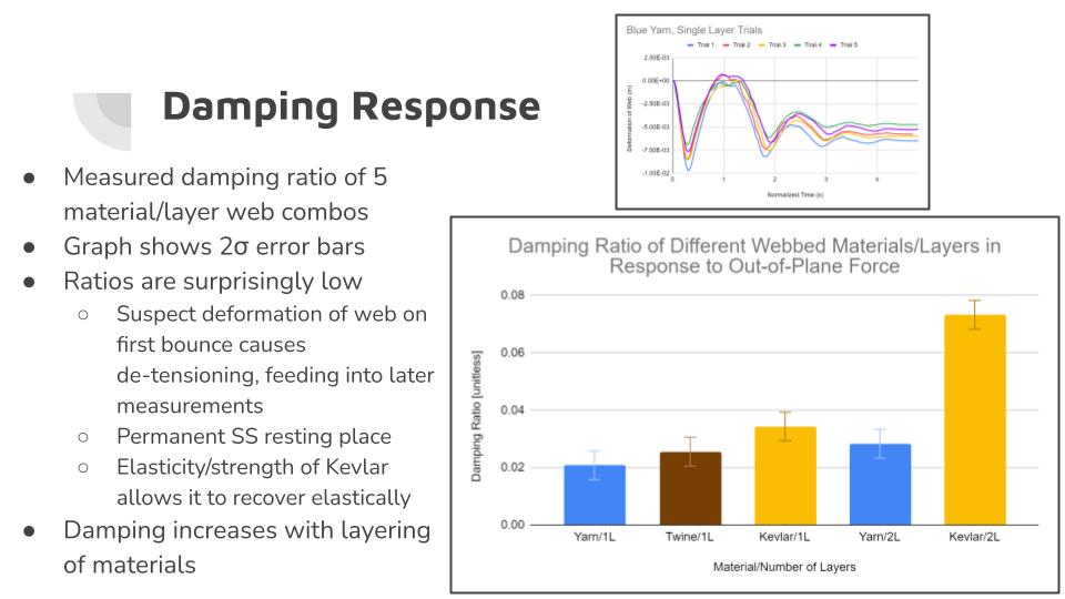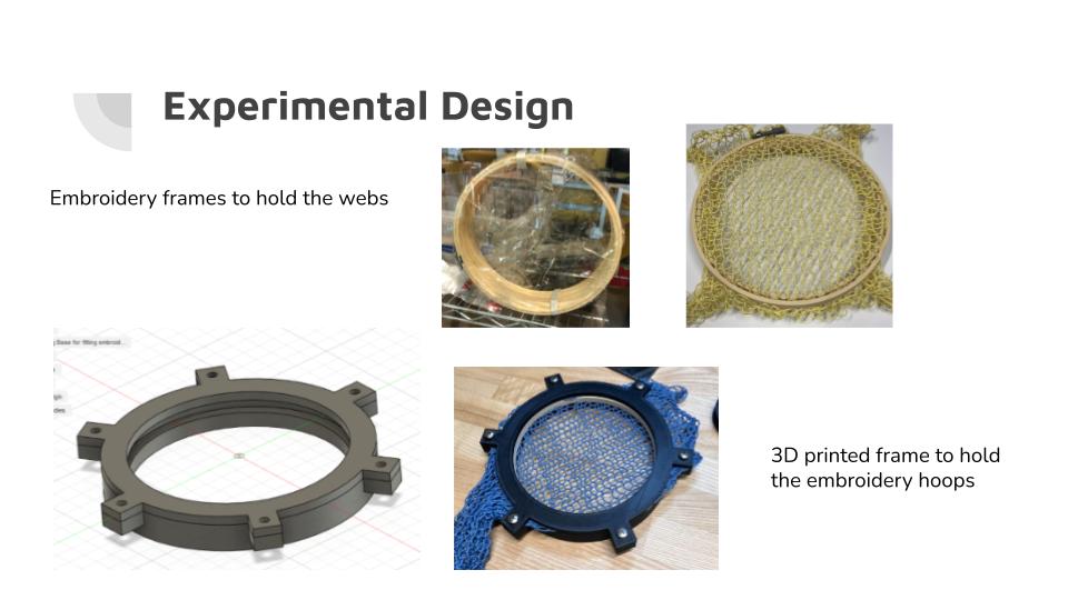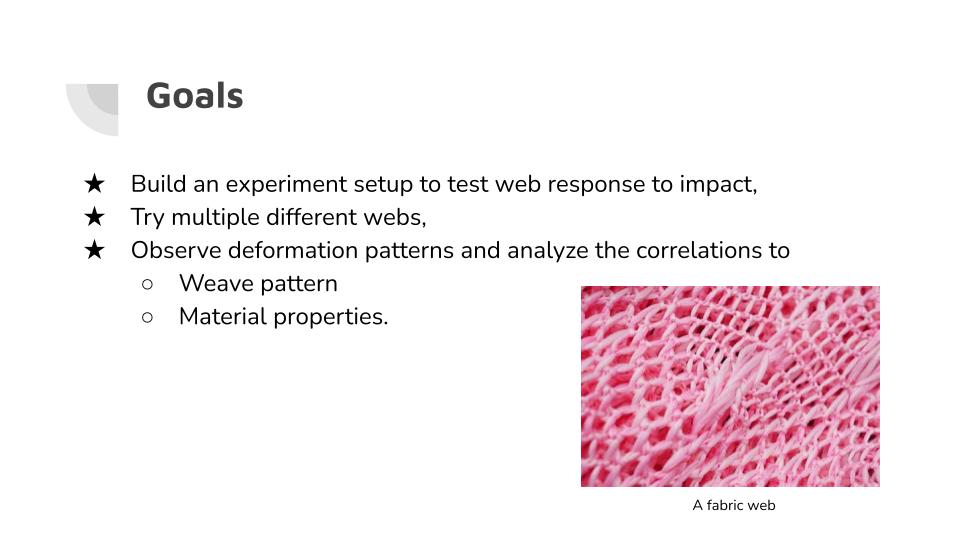 The goal of this project was to analyze how using different materials in a weave pattern changed the deformation patterns of woven webs. Our final presentation with pictures explains the overall project pretty well: