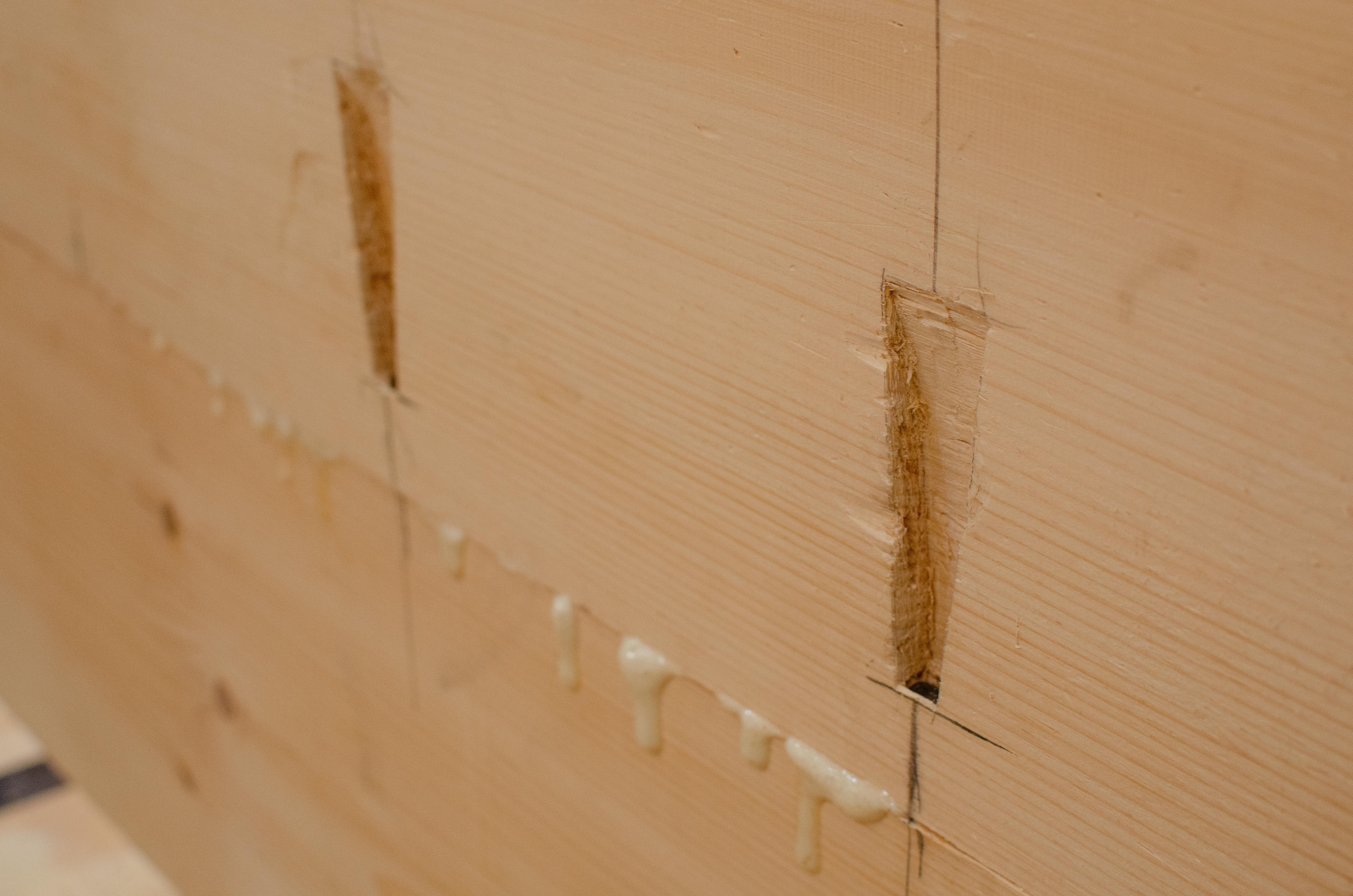 The chisels are also made out of a harder steel than wester chisels – it takes more work to get a perfect point, but they last longer. The teeth in the saws differ from western style saws because instead of being flat and meant for only a back and forth motion, they are actually bent slightly outwards. This is to help with the ‘rubbing’ process in fitting boards together – by scraping parallel with the seam of the wood, you create a watertight seal.