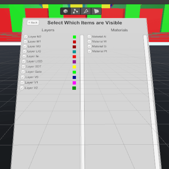 I started by getting familiar with the game development platform, Unity, and with virtual reality itself. This involved learning how to make my virtual self be able to move, interact with objects, fly, and collide with objects, and took about two weeks of watching youtube tutorials for game development in Unity. I also had to familiarize myself with VR – I hadn’t played any VR games up until that point, so I played through free demos of games to learn which controls were the most intuitive for which actions. Then I was able to start thinking about how to load a microchip build schematic into the game.